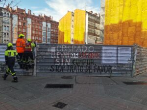 - Europapress: Bomberos retiran parte de la valla de la parcela del Obispado en la calle Lersundi en Bilbao ante el riesgo de caída