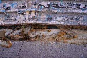 La policía ha llamado a los bomberos que han venido a inspeccionar para ver qué se podía hacer. Al principio han intentado reparar la valla, que estaba a punto de caerse, pero han visto que era imposible, dado el mal estado de las maderas que servían de apeo y a la deficiente construcción.