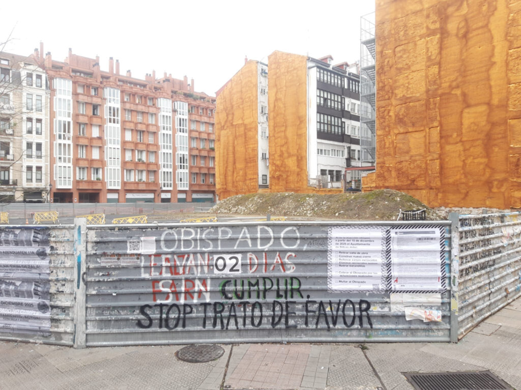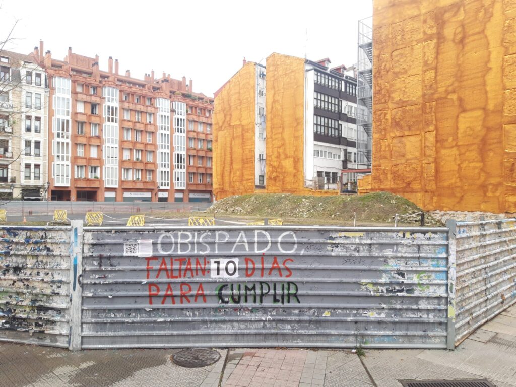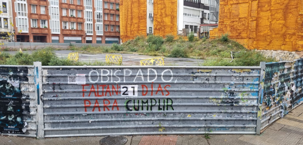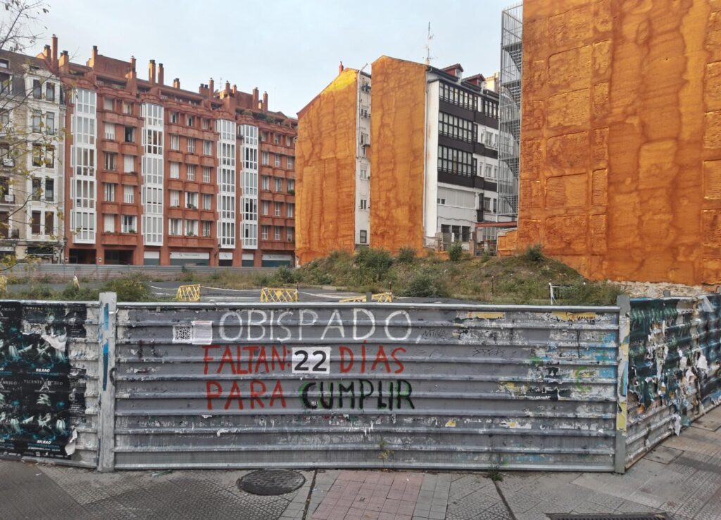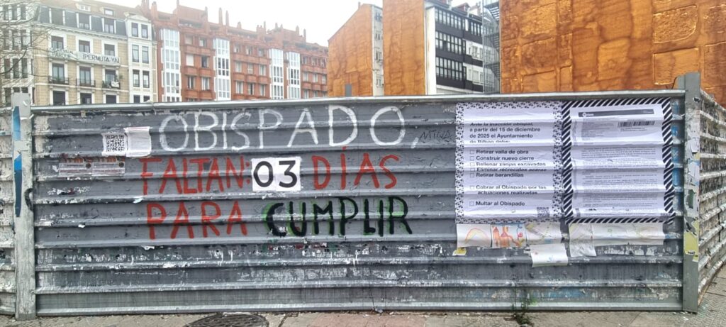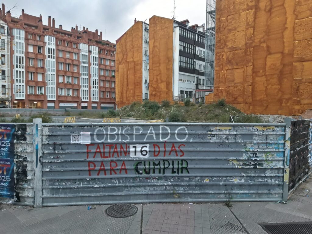 Esta cuenta atrás, que actualizábamos cada día en la vallla de obra, hacía pública la resolución del 8 de septiembre de 2025 del Área de Planificación Urbana que daba 3 meses al Obispado de Bilbao para restituir la urbanización de la parcela a su estado original.