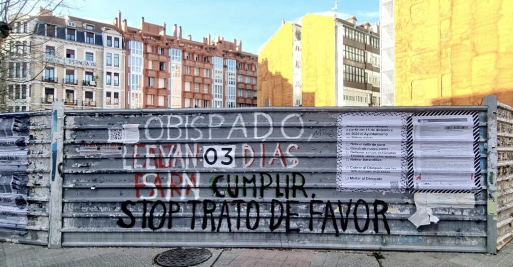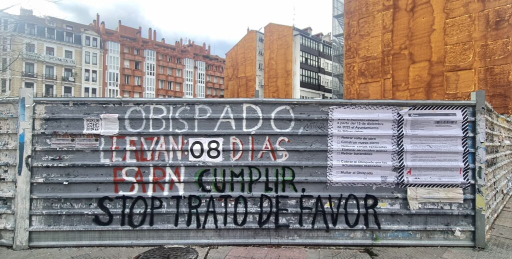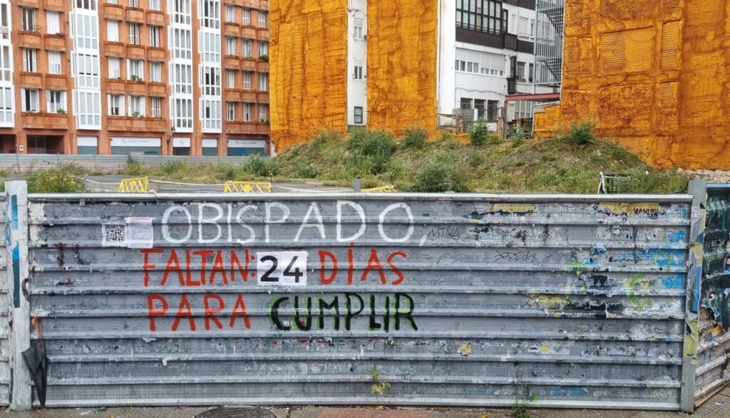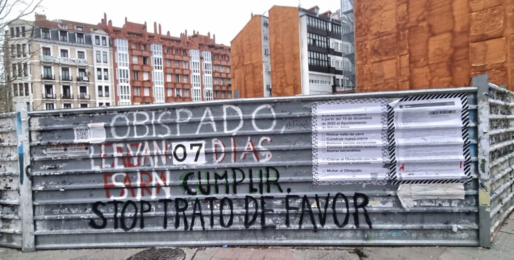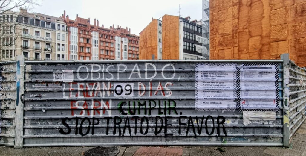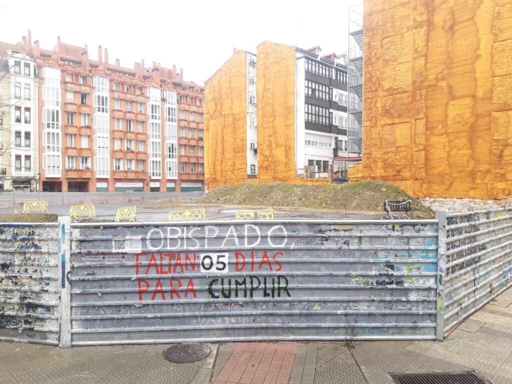 Esta cuenta atrás, que actualizábamos cada día en la vallla de obra, hacía pública la resolución del 8 de septiembre de 2025 del Área de Planificación Urbana que daba 3 meses al Obispado de Bilbao para restituir la urbanización de la parcela a su estado original.