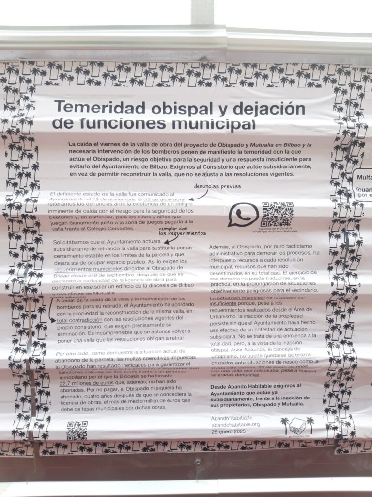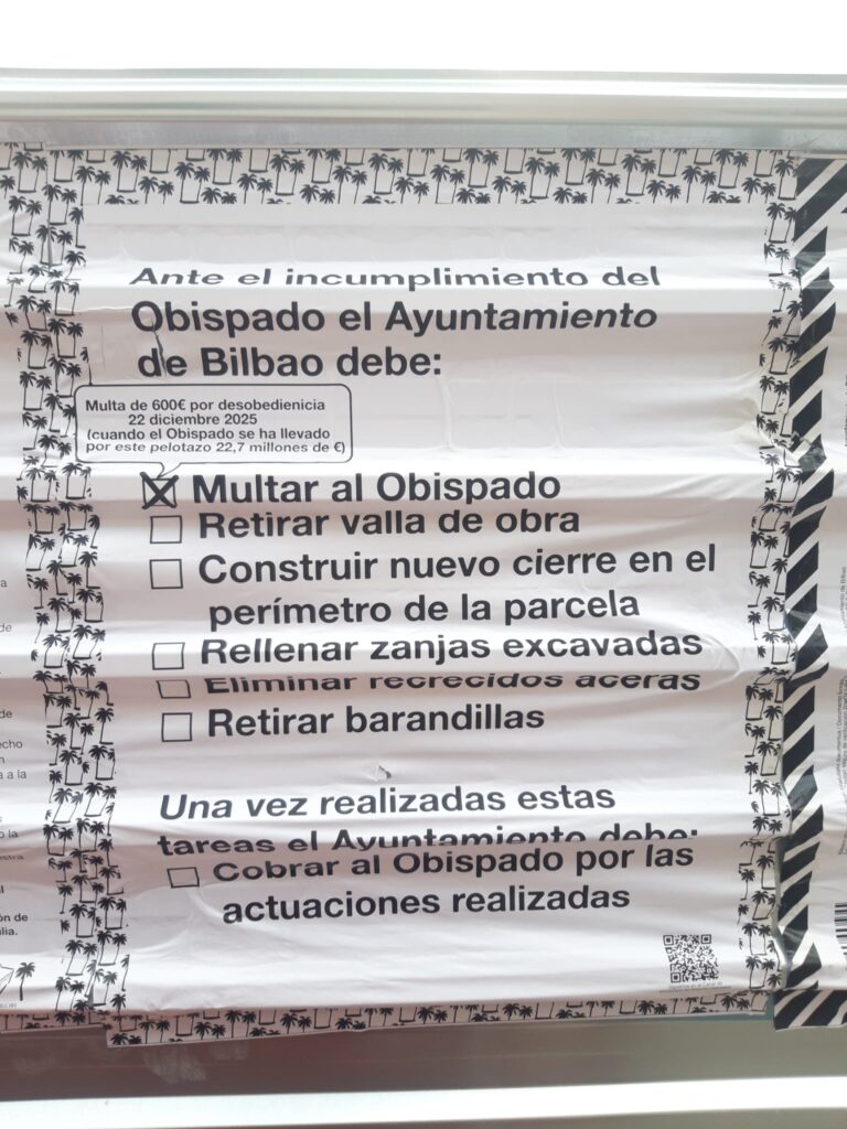 Los días pasan volando, pero aquí los dejamos fijados para recordar esta histórica cuenta atrás hasta el 15 de diciembre de 2025 para recordar a Ayuntamiento, Obispado de Bilbao y todo el mundo que pase por allí, los incumplimientos.